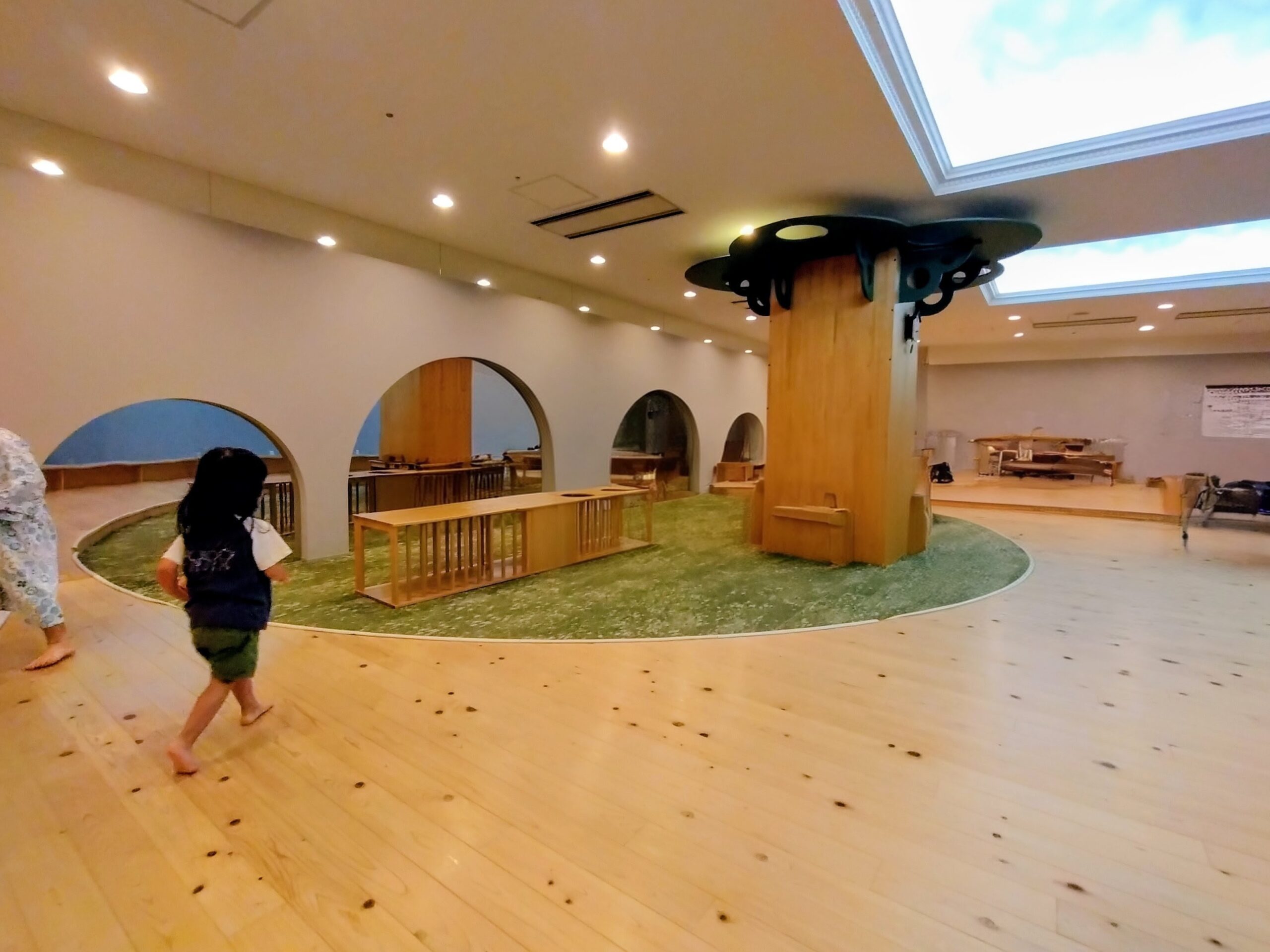 特に本館地下1階にあるキッズルームは、全体的に木彫でできた自然な作りとなっており、子どもが遊びややすい空間となっています。
